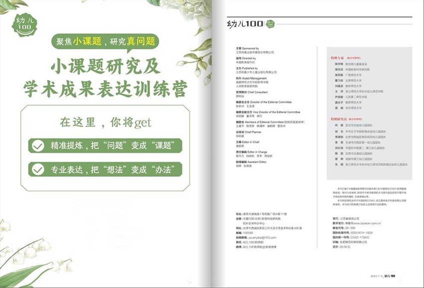 《幼儿100》杂志是一本专注于幼儿教育的杂志,致力于提供有趣、富有教育意义的内容给0-6岁儿童及其家长。该杂志由一群对幼儿教育充满热情的教育专家和儿童心理学家共同创办。他们深知幼儿期是一个宝贵的成长时期,也是儿童发展的关键阶段。因此,他们希望通过这本杂志为儿童提供一个有益于他们全面发展的学习平台。